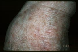 Brown spots on the wrist of a female before and 6 months after her last treatment.