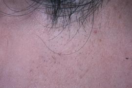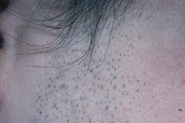 75 percent hair reduction on the sideburn area of a 24 year old skin type 3 female before and after 8 EpiLight treatments over a 2 1/2 year period.